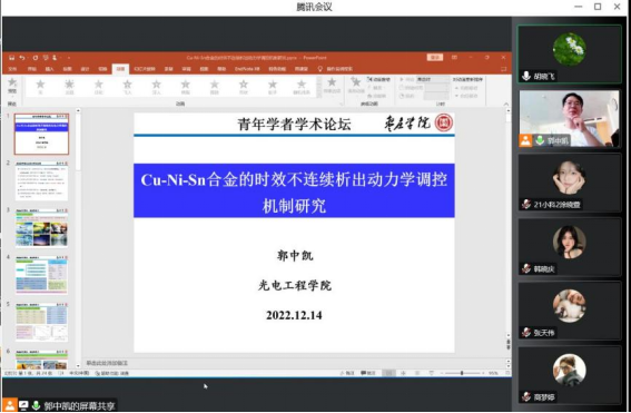 12月14日下午,光电工程学院举办线上青年学者学术论坛。论坛邀请学院青年教师胡晓飞博士和郭中凯博士作学术报告,学院部分教师和学生参加此次学术论坛。