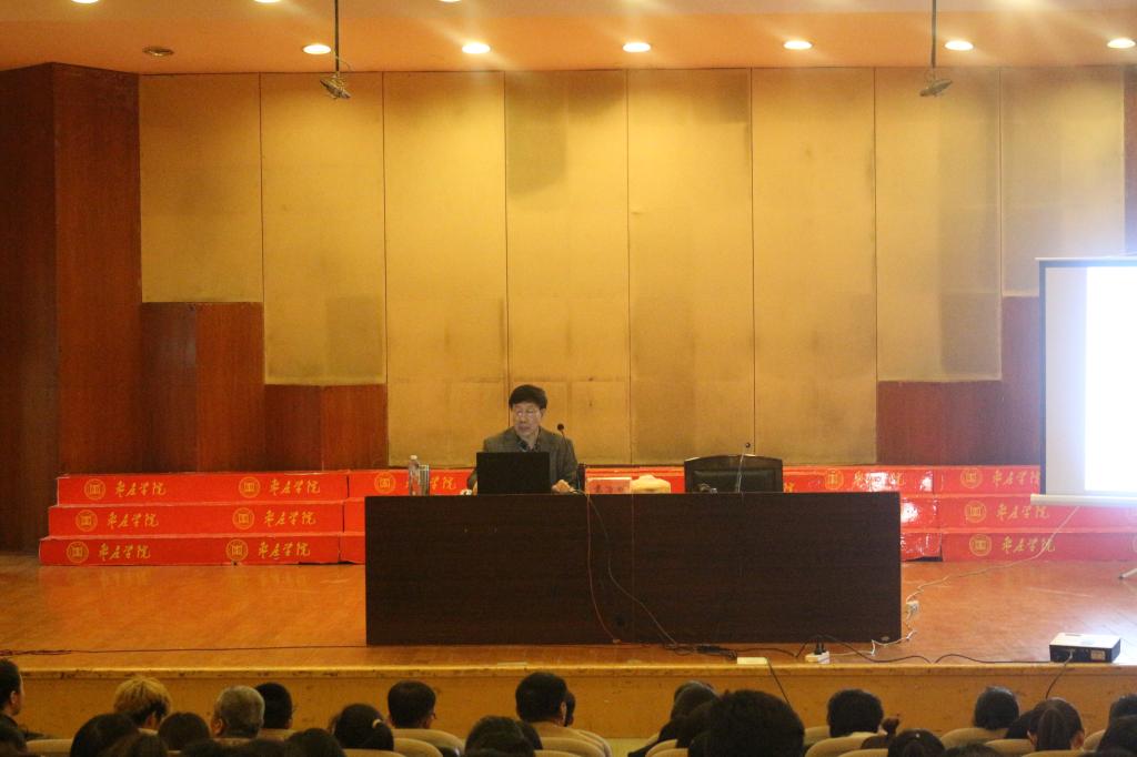 聘任仪式和座谈会结束后,袁教授在音乐楼报告厅作了主题为“裂变径迹热年代学及其地质应用”的学术报告。袁教授对裂变径迹、裂变径迹学的概念、方法和应用进行了讲述,重点阐述了裂变径迹热年代学的原理、性质及优势,突出其在地质地貌和探矿中的应用价值和方式方法。袁教授结合所从事的科学研究案例,介绍了国内外应用裂变径迹技术所取得的重大成就,让同学们在接受知识的同时感受到了地理学特别是地质学真正的魅力。最后,袁教授耐心细致了回答了老师和同学们提出的一些疑问。